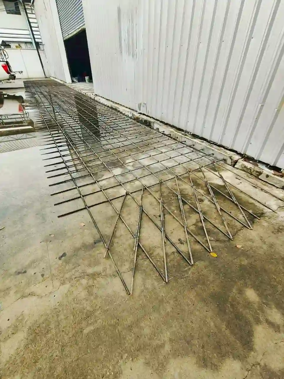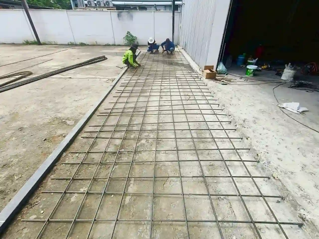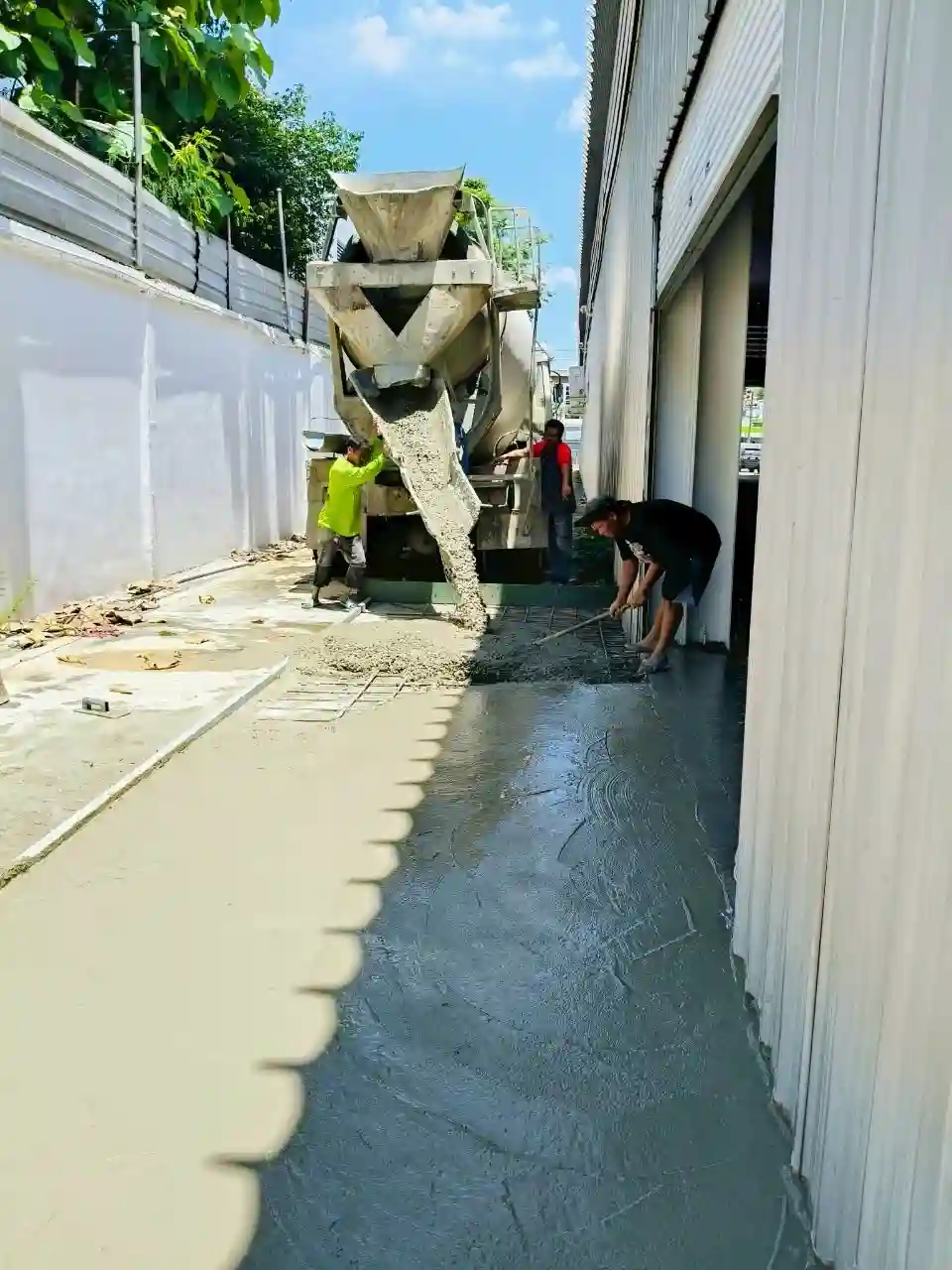 โจทย์ของงาน: ต้องการต่อเติมทางลาดคอนกรีตที่แข็งแรง ทนทาน เพื่อรองรับการขึ้น-ลงของรถยนต์และรถบรรทุกในการขนส่งสินค้าอย่างปลอดภัย.